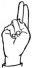 На ћирилици написано ЉУБИСЛАВ АПОСТОЛОВИЋ састоји се из 19 слова [?]. Исписано ћириличном једноручном азбуком за глувонеме: